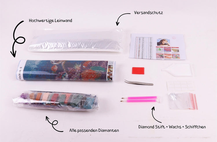 Unser Diamond Painting - Eigenes Bild bietet dir ein Komplettset. Wir haben an alles gedacht, damit du direkt loslegen kannst! Du verwandelst kinderleicht dein Wunschmotiv in dein persönliches Diamond Painting Erlebnis.
