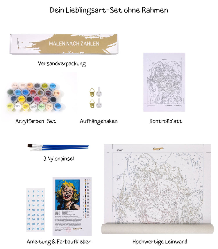 Unser Malen nach Zahlen bietet dir ein Komplettset. Wir haben an alles gedacht, damit du direkt loslegen kannst!