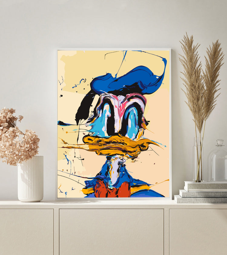 Entdecke die künstlerische Seite von ENTE mit unserem Malen nach Zahlen Set im abstrakten Stil. Tauche ein in die Welt der Farben und Formen, während du dieses beliebte Charaktermotiv zum Leben erweckst.