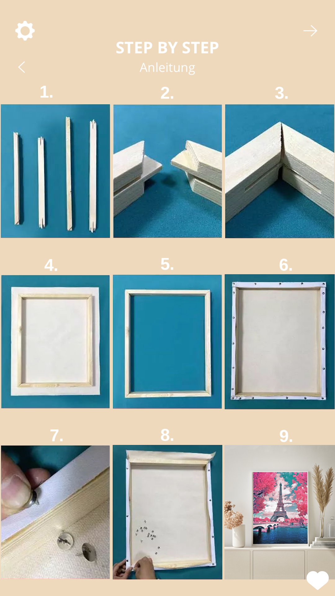 1. Stelle dir ein Glas Wasser zur Pinselreinigung bereit, bevor du mit dem Malen startest. Als Unterlage für die Malen nach Zahlen Leinwandvorlage kannst du Zeitungen auf den Tisch auslegen oder eine Staffelei nutzen.