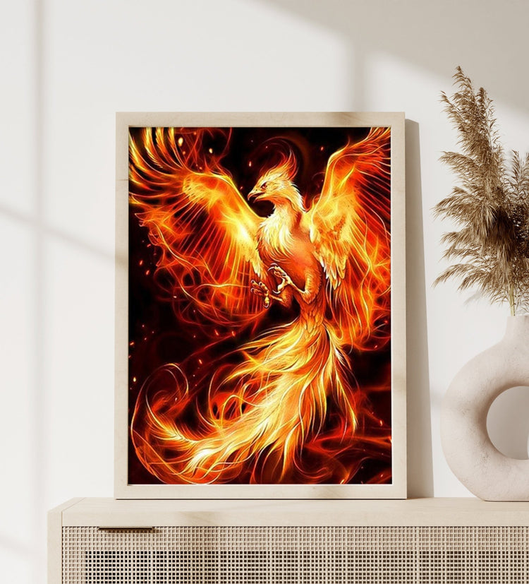 Erwecke den mythischen Feuer Phönix mit unserem Diamond Painting Set zum Leben. Tauche ein in die Welt der Legenden und erschaffe ein strahlendes Kunstwerk mit funkelnden Diamanten. Mit diesem Set holst du dir die Magie und Schönheit des Phönix in dein Zuhause.