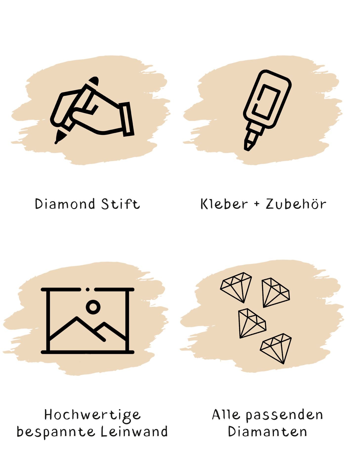 Unser Diamond Painting - Eigenes Bild bietet dir ein Komplettset. Wir haben an alles gedacht, damit du direkt loslegen kannst! Du verwandelst kinderleicht dein Wunschmotiv in dein persönliches Diamond Painting Erlebnis.